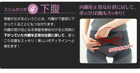 整体師が30年かけて開発した最終版!4点加圧ベルトで、骨盤の傾斜を取り正しい位置へ! 30年にわたって何千人もの悩める患者をいやした盲目の整体師・愛知政則先生。「神の手」とまで称される先生の渾身の秘技【4点加圧】を忠実に再現した本格骨盤補正ベルトこそが、今回ご紹介する「フォークロスベルト」なんです。 実はこの「フォークロスベルト」の原型は、とあるクリニック内の補助器具として、一つ一つ患者さんに合わせて手作りされていたもの。大量生産はできず、これまでネットでは1店舗限定でしか販売されていませんでした。が、「これはスゴイ!」という評判を聞きつけた当社バイヤーが交渉に交渉を重ね、ついに入荷決定! ■4つのツボを集中加圧! 使用した人たちが「今までの補整ベルトと違う!」という秘密が、4点同時ツボ押し。柔軟性を失ってしまった筋肉をほぐし、スリムを実感しやすい体へ導く【仙骨】、下半身ポッチャリの元凶【大転子〈左・右〉】、さらにポッコリが目立つ【下っ腹】……これら4点にベルトがX字型に交差するクロスポイントを設け、ギュギュッと集中加圧!歪みをケアし、ボッテリまとわりついたプヨ肉を削ぎ落とし! 「スリムのツボは4つ同時に押さないと意味がない」という愛知先生の経験をもとに、作り出された「フォークロス スタイルアップベルト」。既製品とは全く異なり、骨盤を締め付けるだけではなく人体の仕組みを徹底的に攻略した効率的な構造!巻き方も簡略化され、誰でも確実に「愛知先生のテク」を体感できるように工夫されています。1日5分の着用でOKだから、是非お試しを!